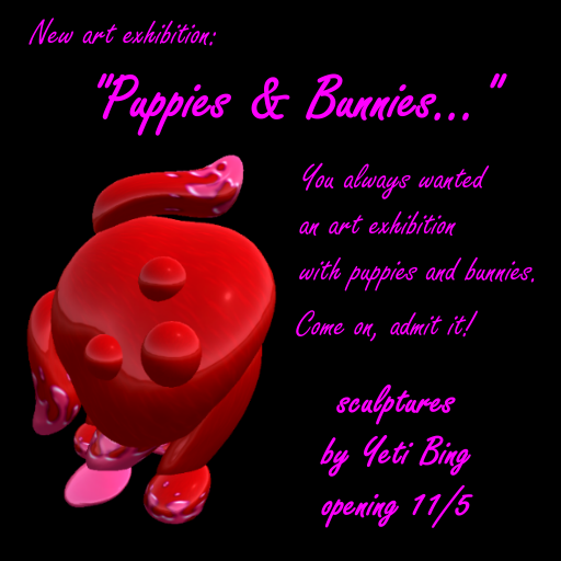 Well, I needed something soft, just something cute and cuddlesome. And this is the result: My first solo exhibit “Puppies & Bunnies...” - sculptures by Yeti Bing! Come around and enjoy!
